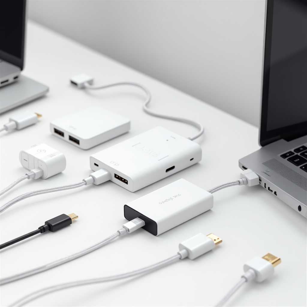 Hubs USB, Adaptadores de video/audio (HDMI, USB-C, DisplayPort), Extensores y convertidores